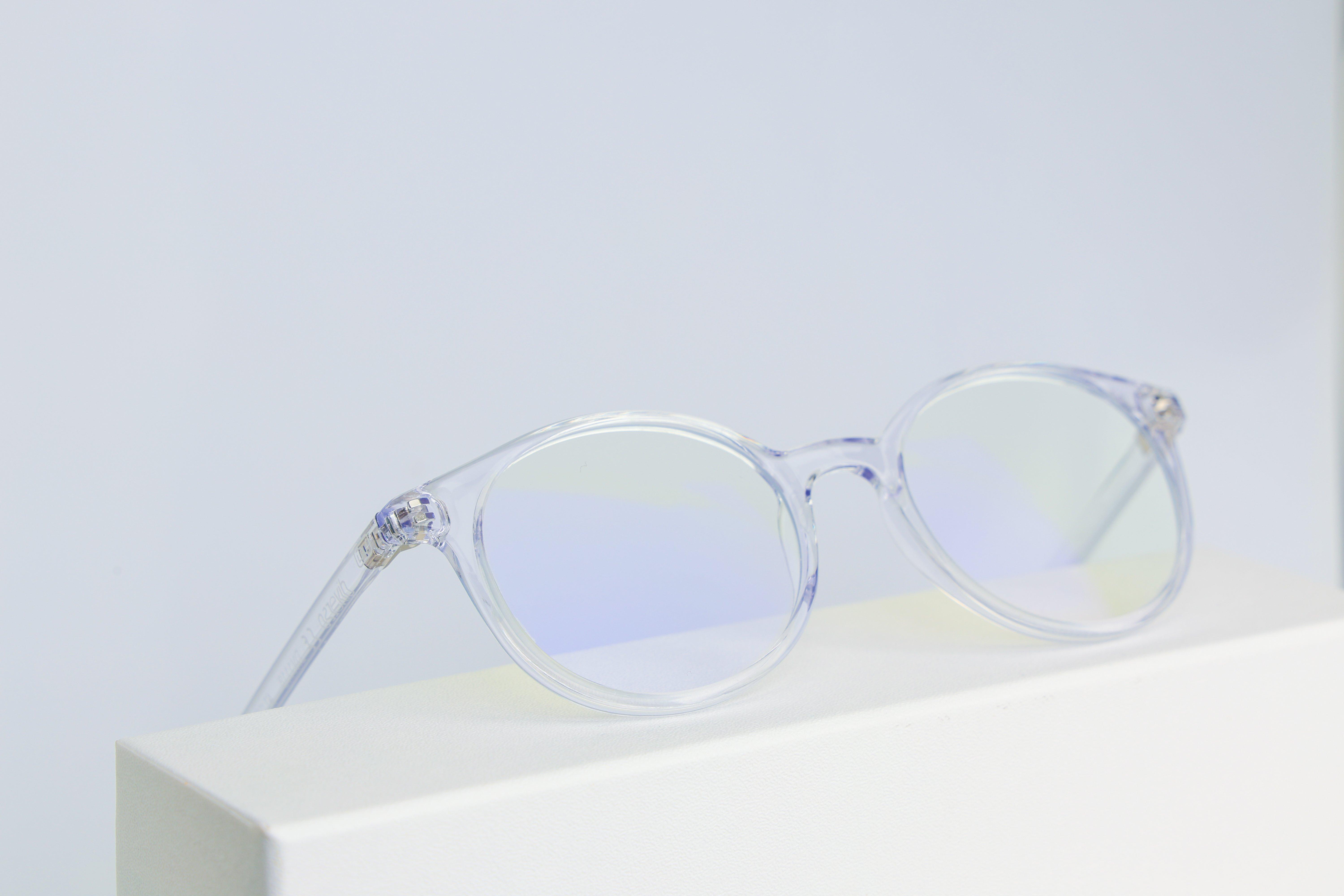 نظارة بلو كت عاكس أزرق كريستالي Crystal Round من لوكسار هي الخيار الأمثل للحماية اليومية من الضوء الأزرق مع مظهر كريستالي شفاف نقي وحديث.